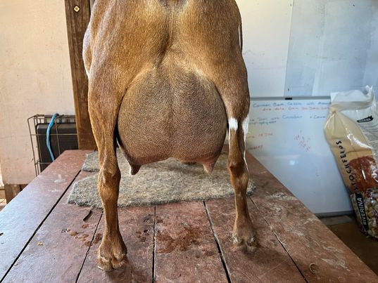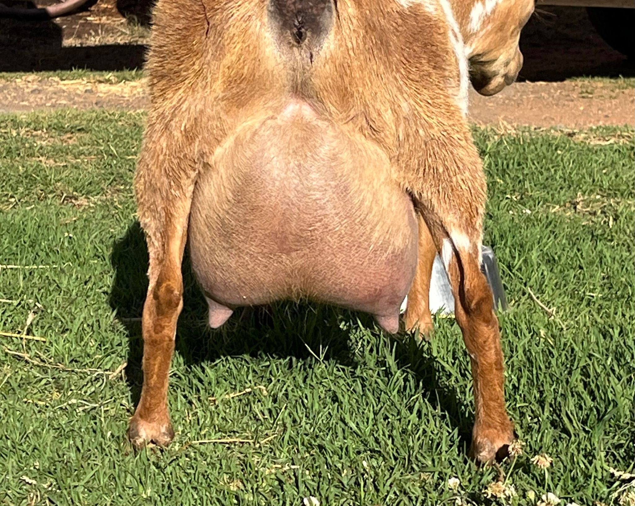 Today Ivydale Bethany kidded two healthy twins – Benny and Bridget – sired by Ivydale Solomon. All doing well. We will be offering Benny for sale and expect that he will be a good producer of udders as both Bethany and her mother, First Fleet Betty, have excellent milk capacity.
