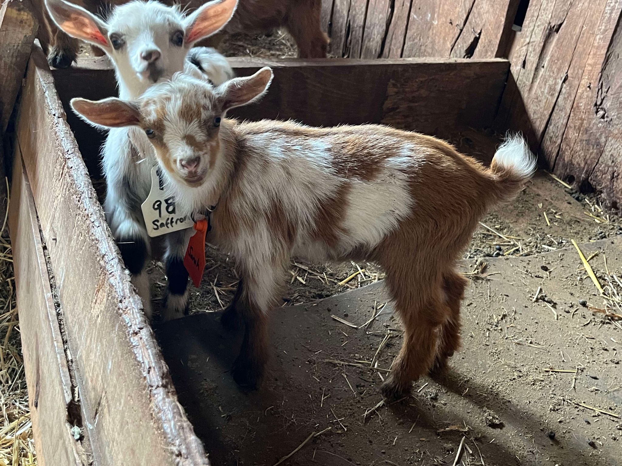 Yesterday Cinnamon, Saffron’s sister, also kidded quads but unfortunately we lost one boy so we have 2 females, Scarlet and Cleo, and 1 male Billie Bob. Billie Bob is quite small so we have decided to bottle feed him but we are having to milk Cinnamon every couple of days as she produces too much milk for two kids. Cassia, who is a half sister to Cinnamon and Saffron, kidded twin does on 21st – Corinne and Cara who are thriving. These kids are all sired by Ivydale Brynn.