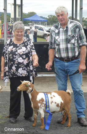 Before coming to Queensland, Carmen was with her breeders, Michael and Ulrike Garwood, who say:  “Carmen surprised us with her first freshening large, well shaped and well attached udder. We took her to the Royal Geelong Show 2018, where she won Overall Best Udder and Reserve Champion Doe against standard dairy breeds! At Berwick Dairy Goat Show in 2019 she won Champion Nigerian Dwarf and she won third place in the first freshening udder class, behind Belinda Cardinal’s fantastic Toggenburgs.”